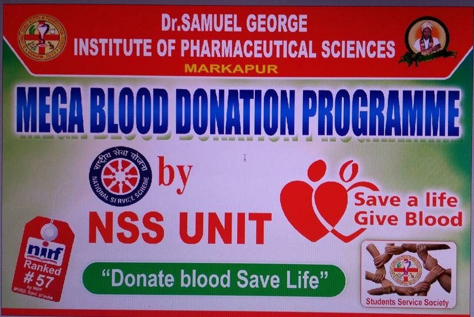 The National Service Scheme (NSS) at Dr. Samuel George Institute of Pharmaceutical Sciences is a vibrant student-driven platform dedicated to community service, social responsibility, and nation-building. Established with the motto “Not Me But You,” the NSS Cell encourages students to actively participate in outreach activities, rural health programs, awareness campaigns, and national integration initiatives, fostering holistic development alongside academic learning.